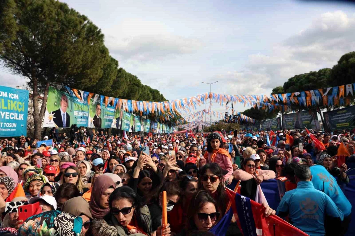 Alandaki vatandaş sayısını 50 bin kişi olarak açıklayan Cumhurbaşkanı Erdoğan, "Ramazan ayına yaklaşıyoruz. Sayılı günler kaldı. İnşallah 31 Mart'ta milli irade bayramı ilan edeceğiz. Cumhuriyetimizin ikinci asrına yakışır yeni bir kalkınma hamlesini inşallah sizlerle birlikte sandıkta vereceğiz. Ülkemize ve Muğla'mıza en büyük müjdemiz bu olacak. Türkiye'yi 21 yıldır eser ve hizmet siyaseti ile yönetirken, her şehrimiz gibi Muğla'mıza verdiğimiz sözleri tutmak için de gece gündüz çalıştık. Bu anlayış ile iktidara geldiğimiz günden bu güne kadar 122 milyar lira tutarında kamu yatırımı yaptık. Eğitim'de 33 bin 375 derslik, Gençlik ve Spor'da 11 bin 157 kişilik üniversite öğrencileri için yurt binası, 71 spor tesisi yaptık. Şimdi de Muğla Bodrum ve Fethiye'ye yeni spor tesisleri, Marmaris'e Gençlik Merkezi kazandırmak için çalışıyoruz. İhtiyaç sahibi vatandaşlarımıza yaklaşık 4 milyar tutarında kaynak ile destek olduk" ifadelerini kullandı.